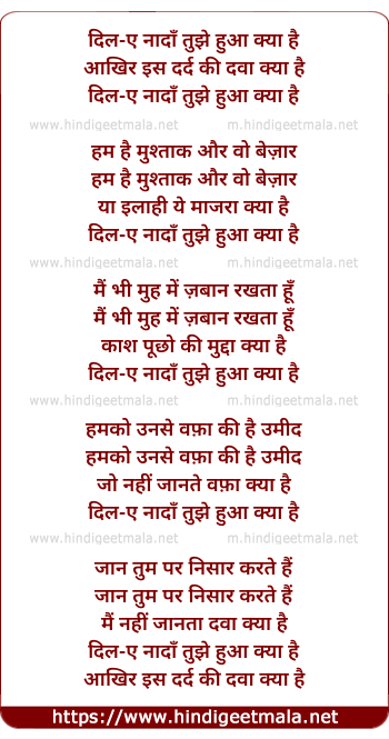 Lyrics of Dil-E-Nadan Tujhe Hua Kya - दिल-ए नादाँ तुझे हुआ क्या है