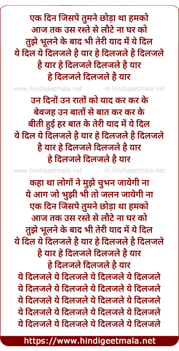 Lyrics of Diljale - एक दिन जिसपे तुमने छोड़ा था हमको