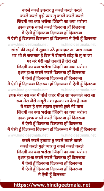 Lyrics of Dilruba Hai Dilruba Aisi Hu Dilruba - दिलरुबा हाँ दिलरूबा ऐसी हूँ दिलरुबा
