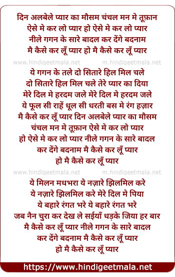Lyrics of Din Albele Pyar Ka Mausam - दिन अलबेले प्यार का मौसम