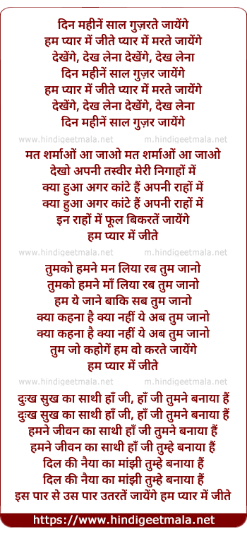 Lyrics of Din Mahine Sal Guzarte Jayenge - दिन महीनें साल गुज़रते जायेंगे