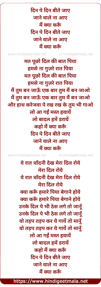 Lyrics of Din Pe Din Beete Jaye - दिन पे दिन बीते जाए