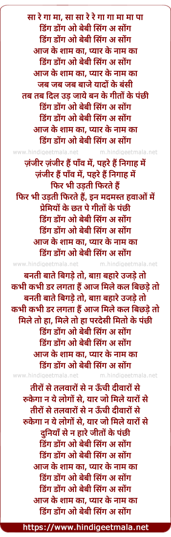 Lyrics of Ding Dong O Baby Sing A Song - डिंग डोंग ओ बेबी सिंग अ सोंग