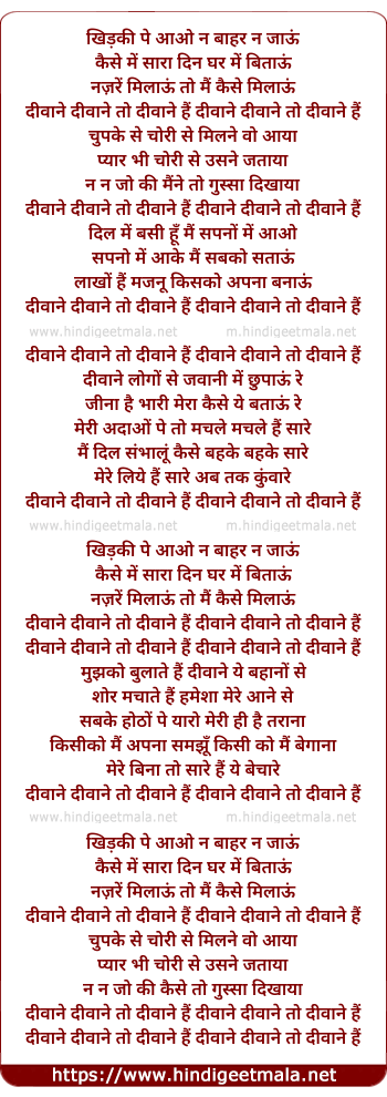 Lyrics of Divane Divane Toh Divane Hai - खिड़की पे आओ न बाहर न जाऊं