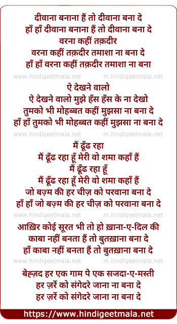 Lyrics of Diwaanaa Banaanaa Hai To Diwaanaa Banaa De - दीवाना बनाना हैं तो दीवाना बना दे
