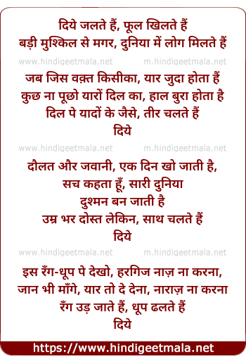 Lyrics of Diye Jalte Hain Phool Khilte Hain - दिये जलते हैं फूल खिलते हैं