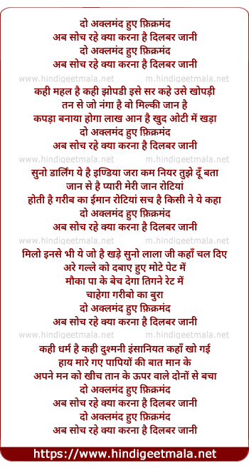 Lyrics of Do Akalmand Hue Fikarmand - दो अक्लमंद हुए फ़िक्रमंद