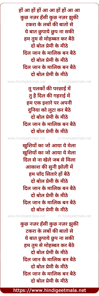 Lyrics of Do Bol Tere Meethe - दो बोल तेरे मीठे