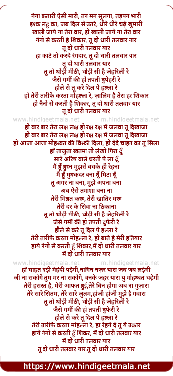 ho naino se karti hai shikar, tu do dhari talwar yar