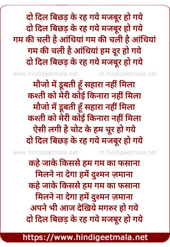 Lyrics of Do Dil Bichhad Ke Rah Gaye - दो दिल बिछड़ के रह गये