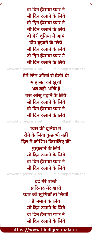 Lyrics of Do Din Hansaya Pyar Ne - दो दिन हँसाया प्यार ने