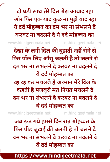 Lyrics of Ye Dard Mohabbat Ka Dam Bhar Na Sambhalne De - ये दर्द मोहब्बत का दम भर ना संभलने दे