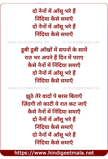 Lyrics of Do Naino Me Aansu Bhare Hai - दो नैनों में आँसू भरे हैं