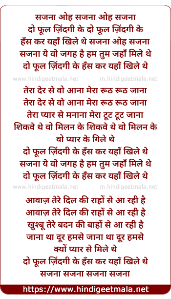 Lyrics of Do Phul Zindagi Ke Hans Kar Yaha Khile The - दो फूल ज़िंदगी के हँस कर यहाँ खिले थे
