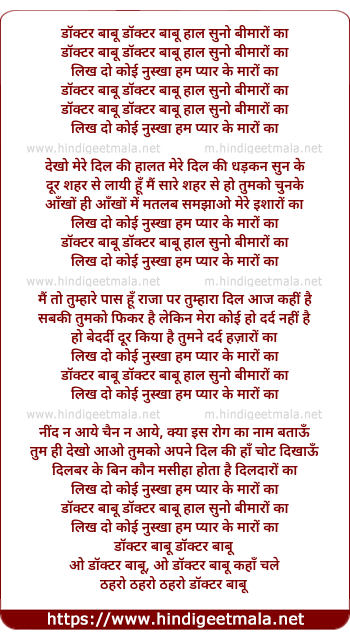 Lyrics of Doctor Baabu Doctor Baabu - डॉक्टर बाबू डॉक्टर बाबू