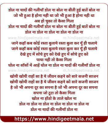 Lyrics of Dol Na Yaado Ki Galiya Dol Na - डोल ना यादों की गलीयाँ डोल ना