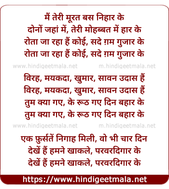 Lyrics of Dono Jaha Teri Mohabbat Me Haar Ke - मैं तेरी मूरत बस निहार के