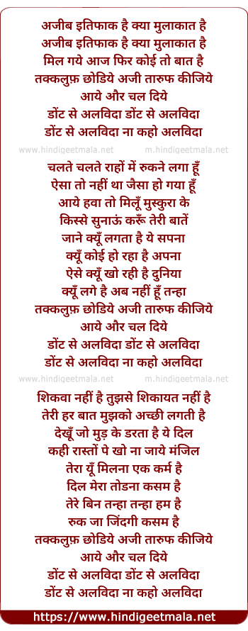 Lyrics of Dont Say Alwida Na Kaho Alwida (Sad) - डोंट से अलविदा ना कहो अलविदा