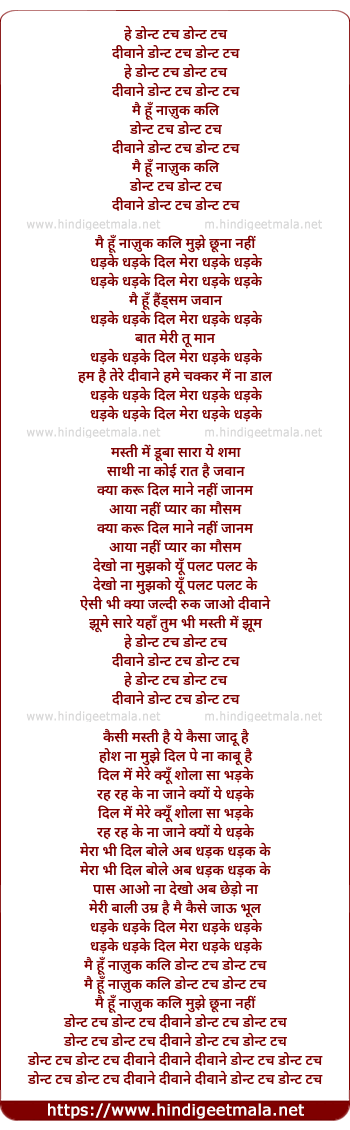Lyrics of Don't Touch Don't Touch Diwane - डोन्ट टच डोन्ट टच दीवाने