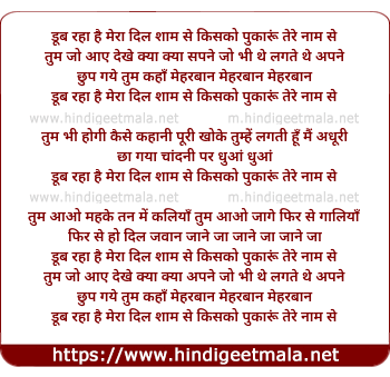Lyrics of Doob Raha Hai Mera Dil Shaam Se - डूब रहा है मेरा दिल शाम से