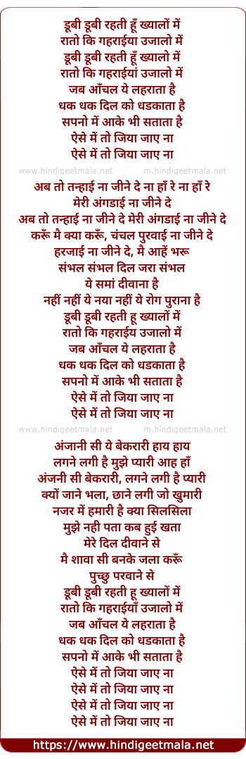 Lyrics of Doobi Doobi Rehati Hoon Khayaalon Mein - डूबी डूबी रहती हूँ ख्यालों में