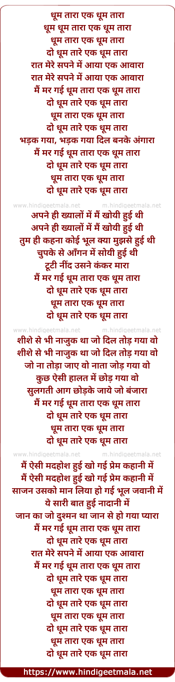 Poetic Translation - Lyrics of Doom Tara Ek Doom Tara - धूम तारा एक धूम तारा