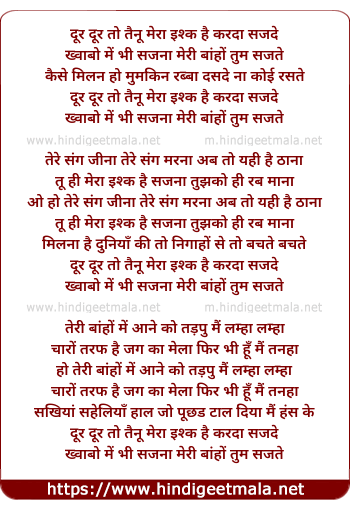 Lyrics of Door Door Ten Tainu - दूर दूर तो तैनू मेरा इश्क है करदा सजदे