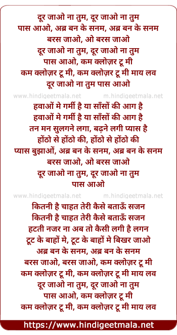 Lyrics of Door Jao Na Tum Paas Aao - दूर जाओ ना तुम पास आओं