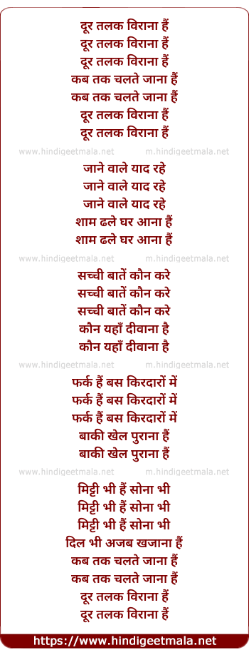 Lyrics of Door Talak Veerana Hai - दूर तलक विराना हैं