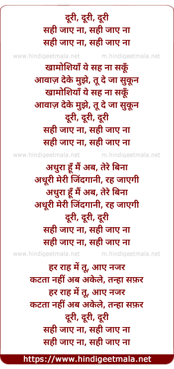 Lyrics of Doorie Sahi Jaaye Na - दूरी, दूरी, दूरी