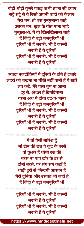 Lyrics of Dooriya Bhi Hai Zaroori - दूरिया भी है जरुरी