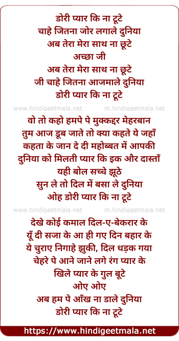 Lyrics of Dori Pyar Ki Na Tute Chahe Jitna - डोरी प्यार कि ना टूटे चाहे जितना
