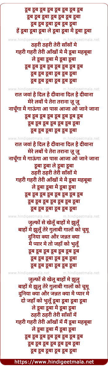 Lyrics of Dub Dub Duba - डूब डूब डूबा