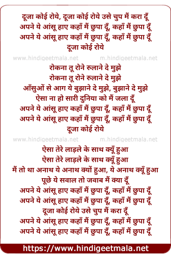 Lyrics of Duja Koi Roye Use Chup Mai Kara Du - दूजा कोई रोये उसे चुप मैं करा दूँ