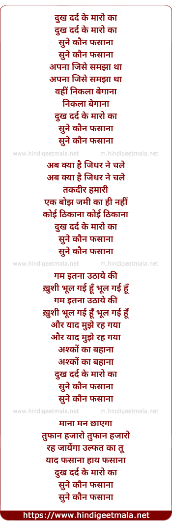 Dukh Dard Ke Maaro Ka Sune Kaun Afsana - दुख दर्द के मारो का