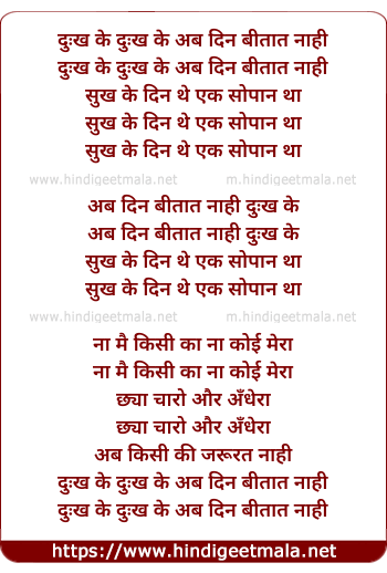 Lyrics of Dukh Ke Din Ab Beetat Naahi