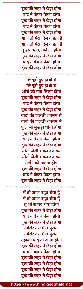 Lyrics of Dukh Ki Lehar Ne Chheda Hoga - दुख की लहर ने छेड़ा होगा