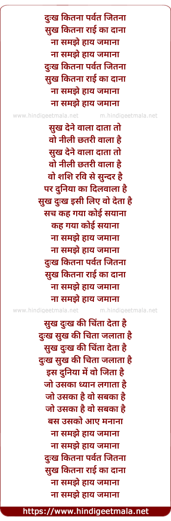 Lyrics of Dukh Kitna Parbat Jitna - दुःख कितना पर्वत जितना