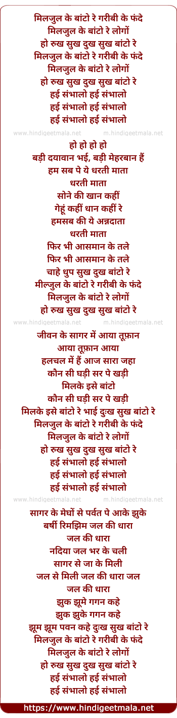 Lyrics of Dukh Sukh Baanto Re - दुख सुख बांटो रे