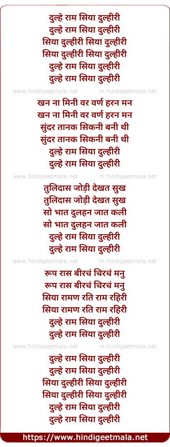 Lyrics of Dulah Ram Siya Dulhari - दूल्हा राम सिया दुल्हीरी