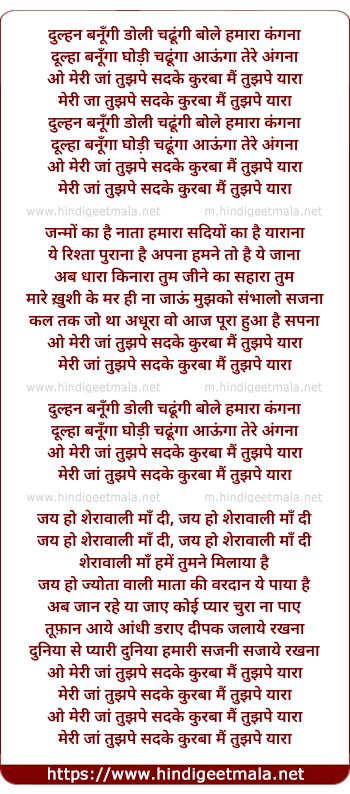 Lyrics of Dulhan Banungi Doli Chaungi - दुल्हन बनूँगी डोली चढूंगी