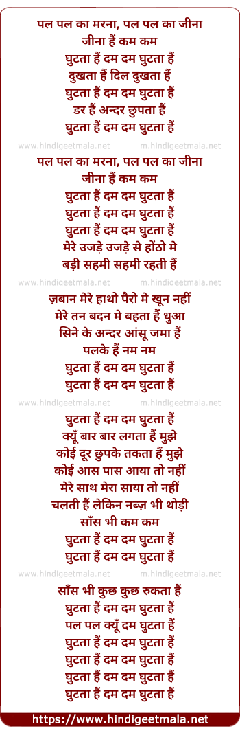 Lyrics of Dum Ghutta Hai - दम घुटता है