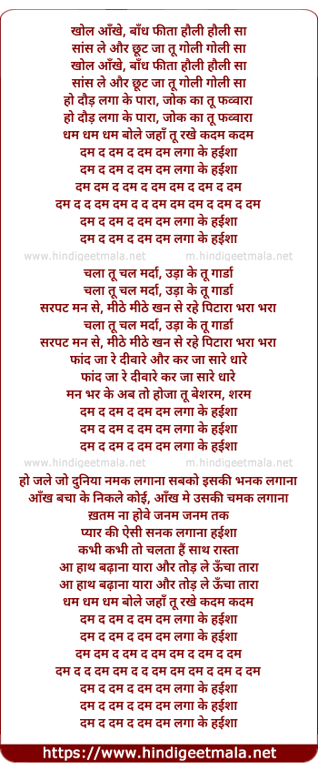 dum da dum da dum dum laga ke haisha