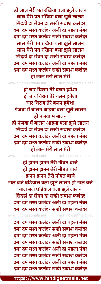 ho laal meri pat rakhiya bala jhule lalan