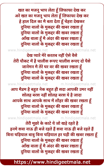 Lyrics of Dunia Walo Ke Mukkadar Ki Khabar - दुनिया वालो के मुकद्दर की खबर