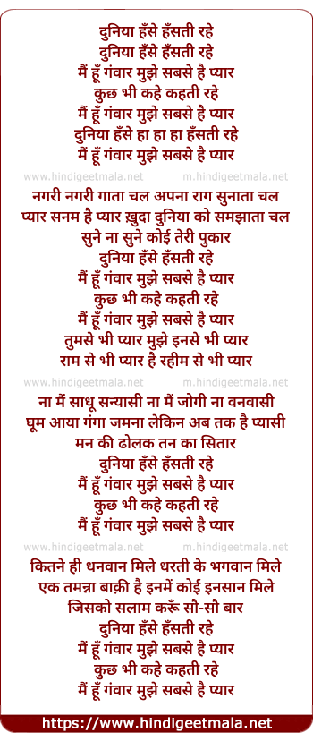 Lyrics of Duniya Hanse Hansatee Rahe - दुनिया हँसे हँसती रहे
