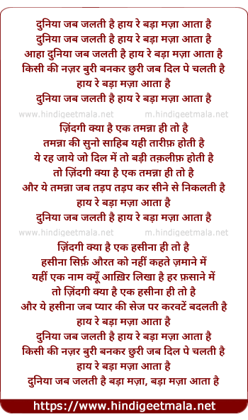 duniya jab jalti hai hay rey bada maja aata hai