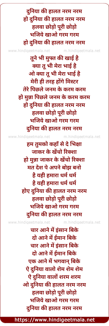 Lyrics of Duniya Ki Halat Naram Naram - दुनिया की हालत नरम नरम
