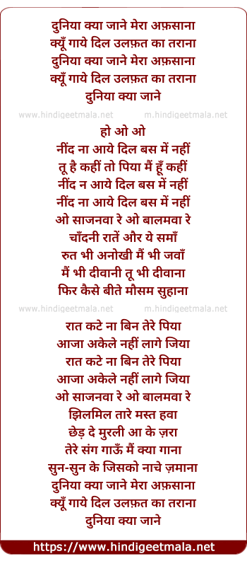 Lyrics of Duniya Kya Jaane - दुनिया क्या जाने