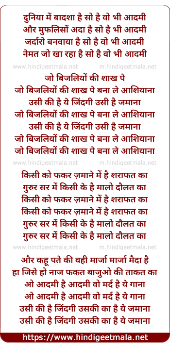 Lyrics of Duniya Me Baadshah Hai - दुनिया में बादशा है